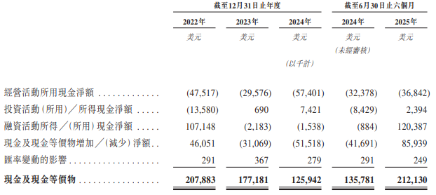 上述同期,英矽智能经营活动所用现金净额分别为47.5百万美元、29.6百万美元、57.4百万美元、36.8百万美元。