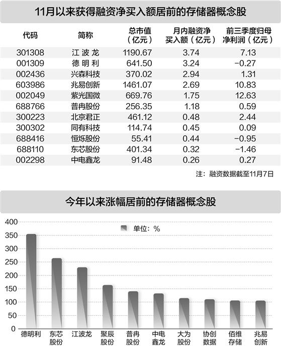 截至11月7日,11月以来,超半数存储器概念股获得融资资金加仓炒股配资理财,其中6股月内获得融资净买入均超1亿元,包含江波龙、德明利、兴森科技、兆易创新等。